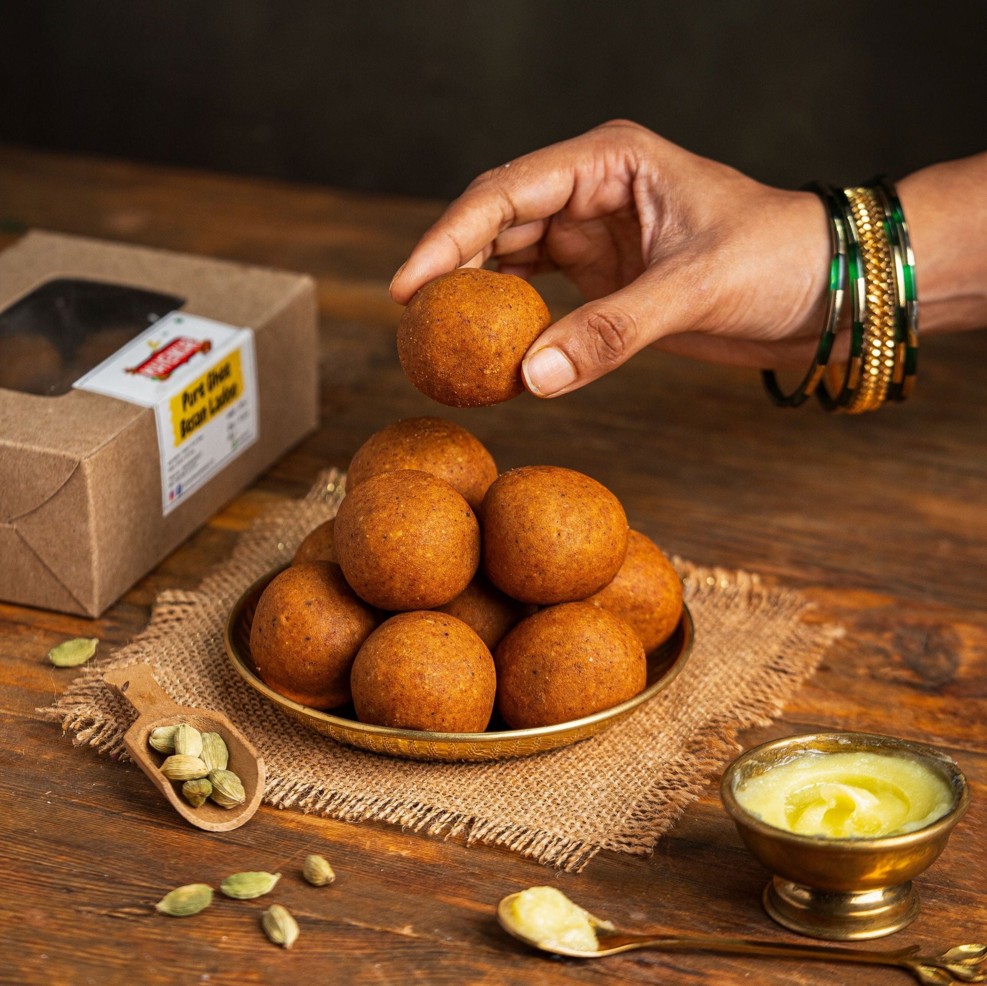 These ladoos are made using Pure Ghee which also acts as a binding agent.